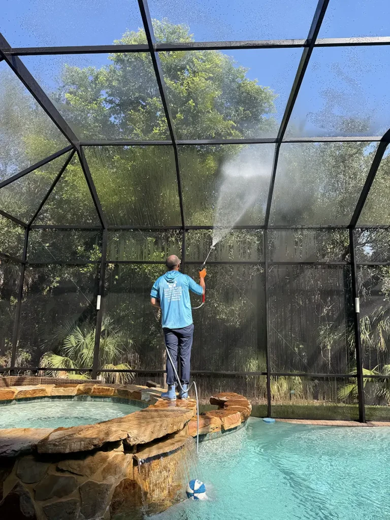 Screen enclosures collect dust, pollen, algae, and cobwebs quickly in Florida’s climate. We clean screens and framing carefully to restore clarity and keep your outdoor space looking clean and open.